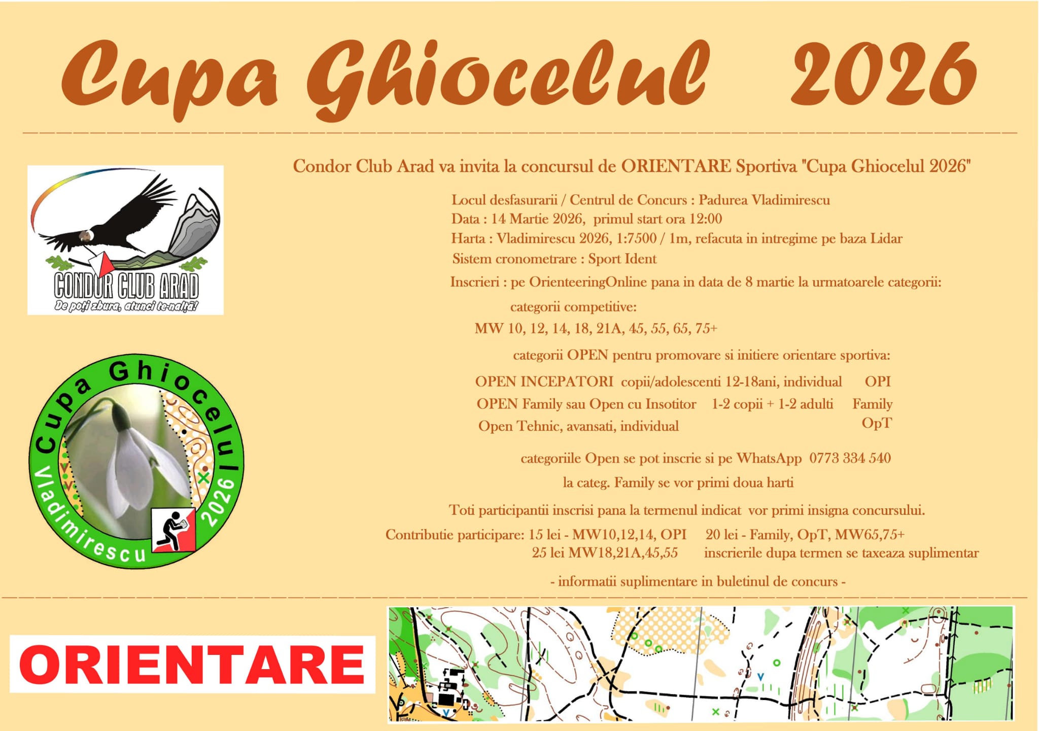 - Orientare. Proba de concurs se desfășoară în timpul probei de regularitate. Orientarea se face pe viză, organizatorii nu asigură busole. În concurs se participă individual (dintr-un echipaj pot pot intra în concurs mai mulți membrii), pentru ca în clasamentul general să se ia în considerare cel mai bun timp.